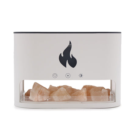 White Blaze Aroma Diffuser - Himalayan Salt Chamber - USB-C - Flame Effect (Salt included)