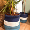 These durable, eco-friendly Jute Rope Storage Baskets are made in India, and have been designed for both function and style. Featuring a bold striped design in blue, white and teal, inspired by the iconic Evil Eye symbol, they are perfect for organizing smaller items, while adding a stylish touch to any room.