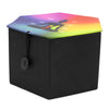 Small singing bowl set, with a hoop cushion and two-sided stick. Decorated with various yogic positions, packed into a pouch and a hexagonal box.