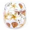 Bring a touch of nature indoors with this candle holder made from recycled glass, decorated with real pressed flowers. Handcrafted in India, each piece has a unique texture, with tiny air bubbles adding an rustic, organic charm. Perfect for tealights and small candles: when lit, the embedded florals come alive, casting a soft glow on any living space. Ideal for cosy evenings, table settings, or as a thoughtful gift.