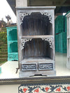 Albasia Bathroom Cabinet with a charming greywash finish that highlights the natural beauty of the wood grain. This stylish cabinet offers practicality, the two shelves and roomy drawers offering perfect storage space for the bathroom.