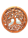 Handcrafted from sustainable wood using traditional techniques, each piece is hand-carved and totally unique. This plaque features a tree of life motif, hanging with heart-shaped leaves.